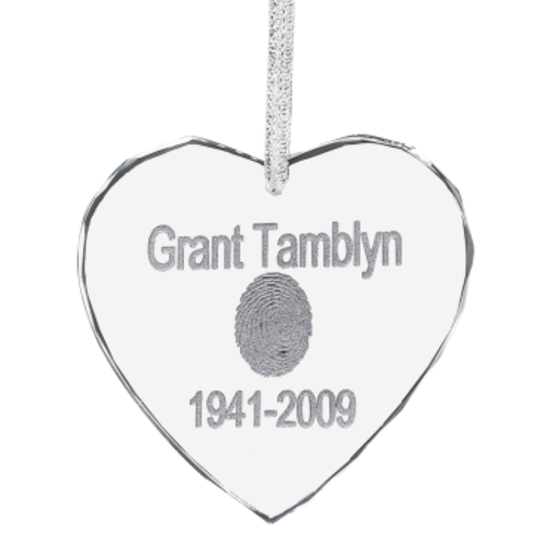 Fingerprint with custom engraving available (1 line above and below fingerprint, 10 characters per line). Optional laser etched photo available in place of fingerprint. (High quality file must be provided).