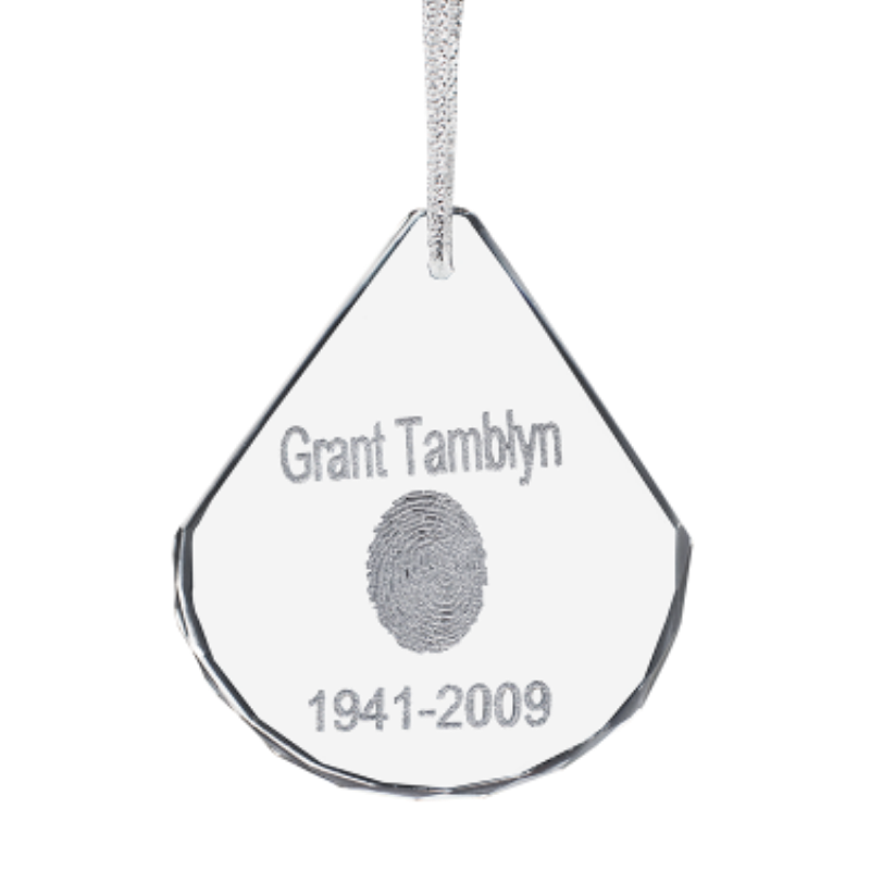 Fingerprint with custom engraving available (1 line above and below fingerprint, 10 characters per line). Optional laser etched photo available in place of fingerprint. (High quality file must be provided).