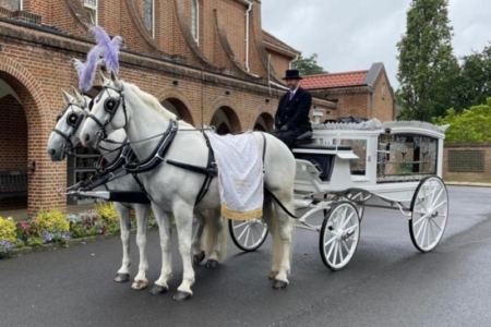 Black Horse Drawn Hearse with a Pair of Black Horses with Multi Coloured Pl...This site uses cookies. By continuing to browse the site, you are agreeing to our use of cookies.